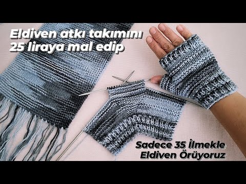 35 İlmekle Parmaksız Kolay Eldiven Yapılışı ????????handmade knit glove scarf crochet patik design pattern
