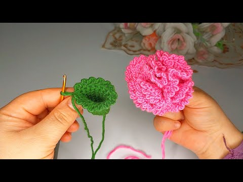 Crochet Knitted Carnation???? Flower Making ✅ Knitted Keychain #crochet #crochetstitch #craft #diy #crochettutorial #crochetflower #crochetcarnation #