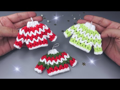 You will love these crocheted mini sweaters as you may use them on a Christmas tree, in your car or as a keychain. Also, crocheting them is very enjoyable and easy. #crochetchristmas #crochetchristmastree #crochetornament #easycrochet #crochetkeychain