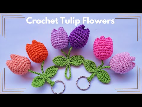 Crochet tulip flower key chain is very easy to make and is very suitable for beginners in crochet. This key chain is usually used as a souvenir. The thread I use is : Onitsuga Yarn Polycherry Polyester Knitting Yarn Material: 100% polyester Needle size: Knit 3.75-4.5 mm. Crochet 3-4 Weight: 100 gr/roll Length: 255 meters Thread thickness: 3 light: 8 ply DK, Light, Worsted Flower : Magic ring R1 : ch 1, 6 sc, slst in 1st sc R2 : ch 1, (sc2inc)* 6 times, slst in first sc R3 : ch 1, (sc, sc2inc)* 6 times, slst in first sc R4 : ch 1, (sc, sc, sc2inc)* 6 times, slst in 1st sc R5-11 : ch 1, sc in each stitch (24 sc), slst in 1st sc Leaf : Slip knots, ch 16 R1 : sc, hdc, 3 dc, hdc, sc, slst, sc, hdc, 3 dc, hdc, 3 sc in same stitch hdc, 3 dc, hdc, sc, slst, sc, hdc, 3 dc, hdc, 2 sc in same stitch, slst. Rope : Make a chain of 50 (ch 50) #crochetflower #crochetkeychain #crochetbeginners