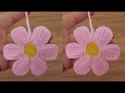 ????????????Easy Crochet Flower keychain | Crochet Tunisian flower #crochet #knitting #crochetlove #crochetflower #crocheting #craft