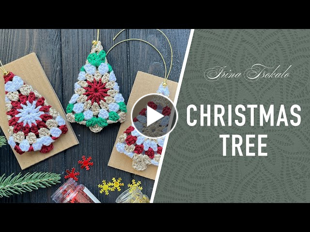 This festive granny square Christmas tree is the simplest of all known. Let's crochet it together. It'll be an original decoration for your Christmas tree or a gift for your closest ???? I used YarnArt Elegance 50g/130m (white 117) YarnArt Vegas 50g/150m (golden) YarnArt Style 50g/185m (bordo 676) & YarnArt Violet 50g/282m (burgundy 112) Navigation: 0:00 - intro 1:22 - Round 1 2:43 - Round 2 3:47 - Round 3 5:04 - Round 4 7:01 - Round 5 8:45 - sewing 11:42 - stem 12:52 - details