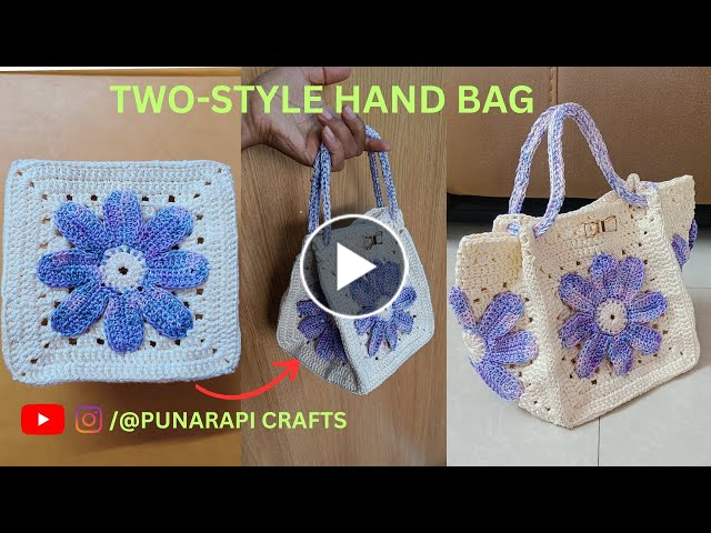 In Part-1, making of flower granny squares r shown. In Part-2, joining the squares and handle r shown. Very Very Elegant and simple hand bag. u can make small or bigger length of handle depends on Ur requirement . u can use the bag in two styles. Here i have used purse yarn 2 colors, video is shown in 2 parts step by step. SUBSCRIBE AND LIKE .