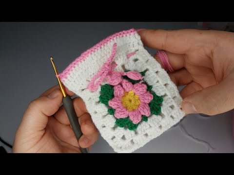 Hand-knitted knitted pouch with drawstring pink green white granny square motif ????????☺ #crochet #crochetstitch #craft #diy #handmade #crochettutorial #crochetrose