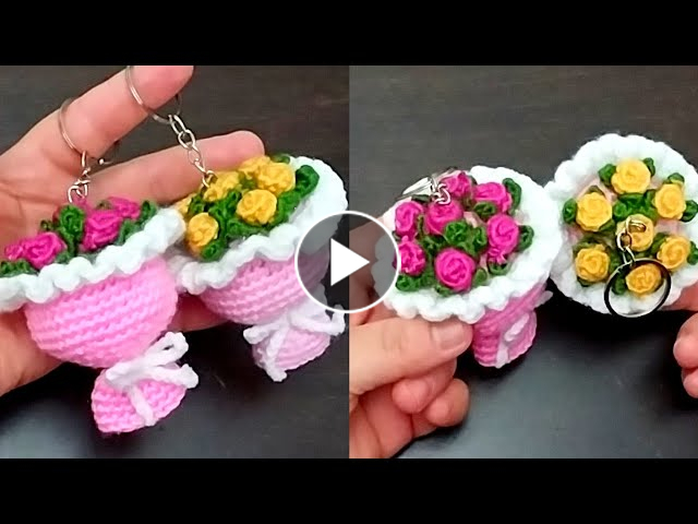 Handmade Keychain crochet flower bouquet //Crochet bouquet flower keychain tutorial #crochet #diykeychain #diy #crochetstitch #crazy #craft #handmade #crafts #crochetbouquet