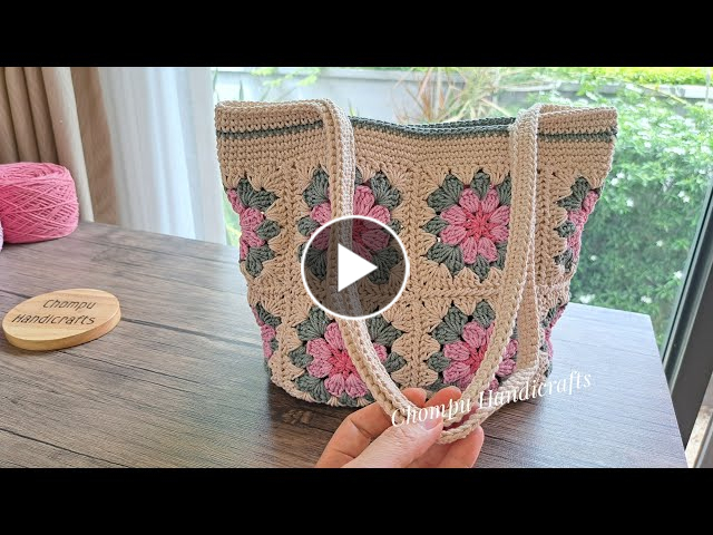 How to Crochet Flower Granny Square Bag | Chompu Handicrafts