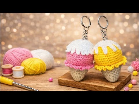 Crochet Ice Cream Keychain Tutorial for Beginners Learn how to make a cute crochet ice cream keychain with this easy step-by-step tutorial! ???? This amigurumi ice cream keyring is perfect for beginners and makes a great handmade gift or bag accessory. In this video, you will learn: • How to crochet the cone • How to make the ice cream scoop • How to assemble the keychain This project is quick, fun, and perfect for using leftover yarn! Materials you will need: • Cotton or acrylic yarn (brown, pink, yellow, white) • Crochet hook (2.0 mm – 3.0 mm) • Fiberfill / stuffing • Keychain ring • Yarn needle • Scissors Optional: • Stitch marker • Hot glue (for keychain fixing) #crochet #amigurumi #crochetkeychain #icecreamcrochet #crochettutorial