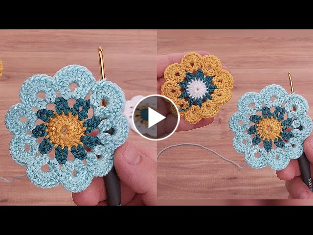 Super Easy Crochet Knitting Flower Motif ???? #crochet #crochetstitch #diy #handmade #craft #crochetrose #crochetmotiftutorial