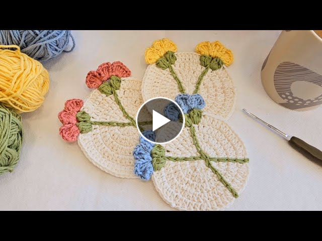 süper oldu ⚘️????tığ işi menekşeler bardak altlığı yapıl