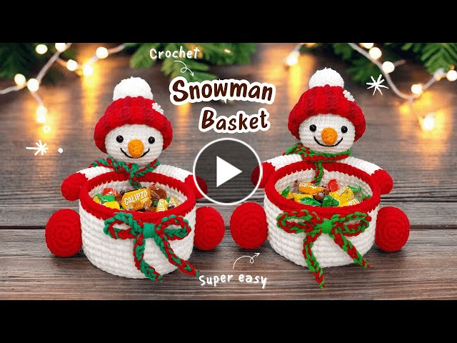 sc - single crochet https://www.youtube.com/results?search_query=single+crochet+for+beginners inc - increase https://www.youtube.com/results?search_query=crochet+increase dec - decrease https://www.youtube.com/results?search_query=crochet+decrease sl st - slip stitch https://www.youtube.com/results?search_query=crochet+slip+stitch Material: To crochet this amigurumi snowman basket pattern for Christmas - I use milk cotton yarn 5 ply (cotton 80% & acrylic 20%), 100g ≈ 175m - Crochet hook size 4.0mm & 2.75mm - Eyes 7mm - Yarn needle - Stuffing - Stitch markers: use a stitch marker to mark the end of each round - Scissors - Straight pins You may love these crochet christmas gifts ideas: https://www.youtube.com/playlist?list=PLFfBgdAVgd2o73jPJYPi2OOxNI5SBzAMl 00:00 Intro 00:37 Basket 14:02 Head 22:51 Arms 30:55 Legs 37:07 Nose 42:18 Hat 50:23 Scarf & Bow 51:51 ASSEMBLY #amigurumi #how_to_crochet #crochet_for_beginner
