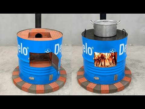 The idea of recycling iron drums and cement into an effective wood stove