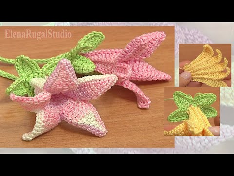 My English Channel here: https://www.youtube.com/channel/UCYdtpWueAERC0OnN8RyWDIA В мастер-классе свяжите вместе с мастером колокольчик крючком. Вязание цветка – колокольчика подробно и поэтапно показано на этом уроке. В первой части нашего мастер-класса Вы увидите вязание верхней части цветка, то есть пяти удлиненных лепестков, их соединение и обвязку. Приятного Вам просмотра! Пряжа 100% хлопок, метраж 169 метров в 50 граммах. Крючок 1,5 мм или 2 мм. Начинаем вязать! Вместе с нами вязание крючком станет для Вас не просто увлечением. Каждая работа, каждый цветочек, связанные крючком — это маленький шедевр. Наши видео уроки дадут возможность научится вязать быстро и профессионально. Вы узнаете основные приемы вязания крючком и постепенно научитесь выполнять узоры различной сложности. Начиная вязать крючком вместе с нами, Вы постепенно освоите различные техники в вязании крючком. Вязанные цветы одна из самых больших и любимых мной тем. Цветы, связанные крючком, используются как в качестве декора, так и как основные элементы в различных техниках: наборное кружево, ирландское кружево, гипюрное кружево, печворк (элементы различной формы). Приготовьте крючок и пряжу, запаситесь терпением и начинайте учится вязать крючком цветы повторяя за нами.