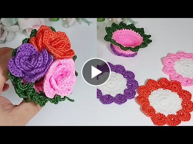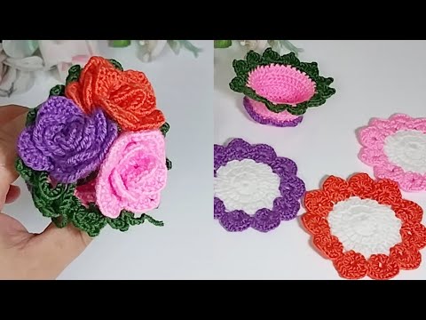 Wonderful ! Crochet Spring Flower Basket //Crochet Flower Coaster ın a basket ???????? #crochet #crochetflower #crochetbasket #craft #creative #crafts #diy #handmade